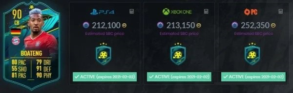 Today EA Sports announced Player Moments SBC of Jerome Boateng, celebrating his wonderful performance of defense in 2020/21 UEFA Champions League against Red Bull Salzburg. Boateng, rated 90CB, with the SBC price of approximate 210,000, expired on February 2nd, 2021.