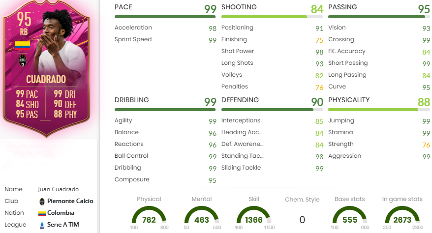qualities this new FUTTIES form of Juan Cuadrado has where it matters most. None