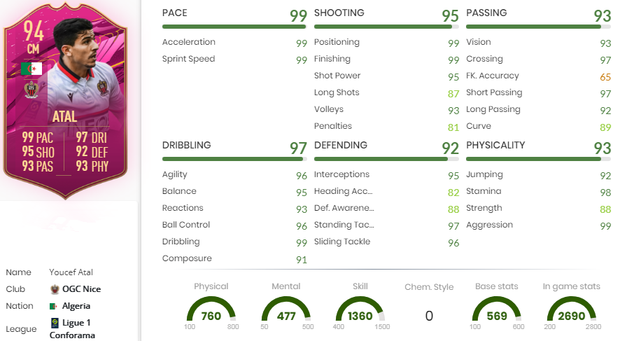 are 11 goals to finish to open Youcef Atal's maximum capacity of 94 OVR in a