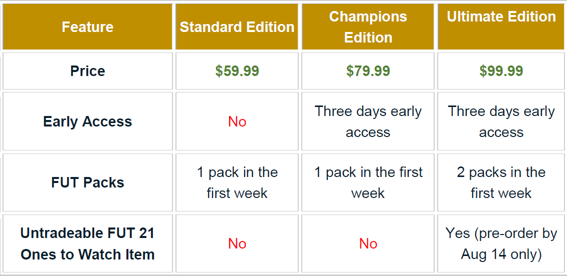 Ultimate Edition offers 1 more FUT pack than Champions Edition, and additionally includes Untradeable FUT 21 Ones to Watch Item if pre-ordered before August 14, 2020. Then let’s check