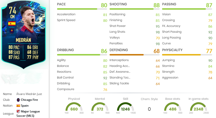 In case you're contemplating whether it merits your chance to open Medrán for your Ultimate Team, that relies upon what your crew at present resembles. Medrán isn't by and large breaking the bend with this 74 OVR card, yet he has solid details in Pace, Shooting, Passing, and Dribbling. Regardless of the general rating, Medrán has a 98 in Long Shots and Penalties, 95 in Shot Power, 92 in Short passing, 92 in Ball Control, 90 in Long Passing, and 90 in Jumping. He's misleadingly useful for as low as his general rating wound up, however, the other uplifting news is the destinations to open him aren't too troublesome to finish.