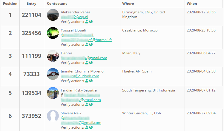 The 6 winners are randomly chosen by the third party gleam.io according to their winning rate as long as the event ends.
