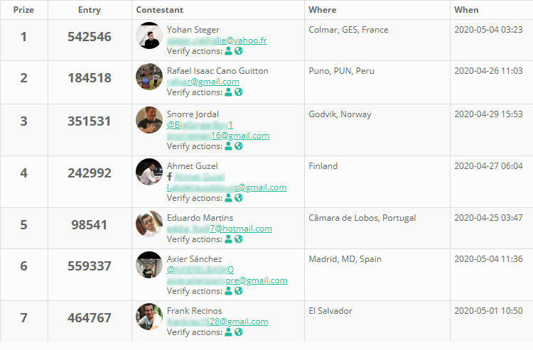 The third-party Gleam will randomly choose the 7 winners. Check the prizes and the list of winners,
